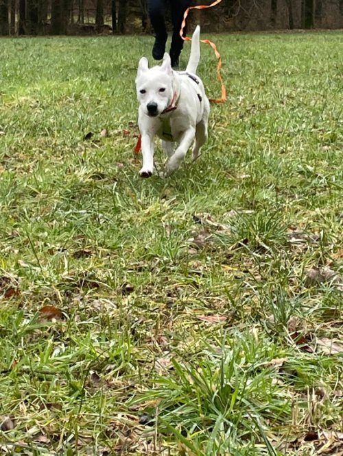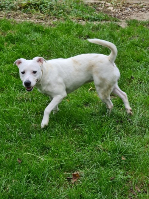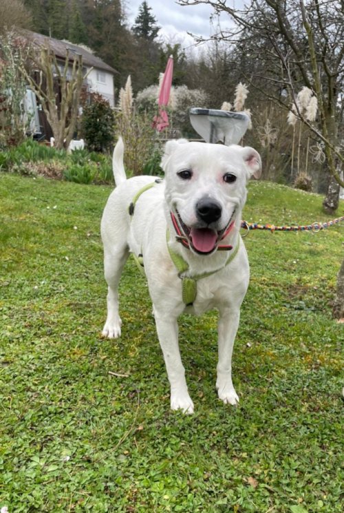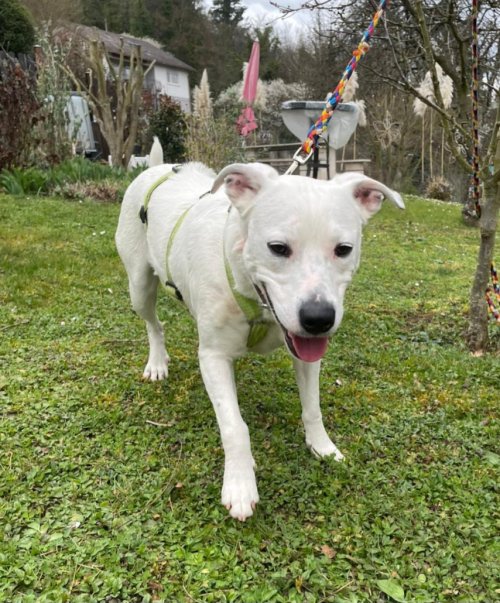 Verspielt, menschenbezogen, lernwillig. Liebt lange Spaziergänge und tobt gerne mit anderen Hunden.